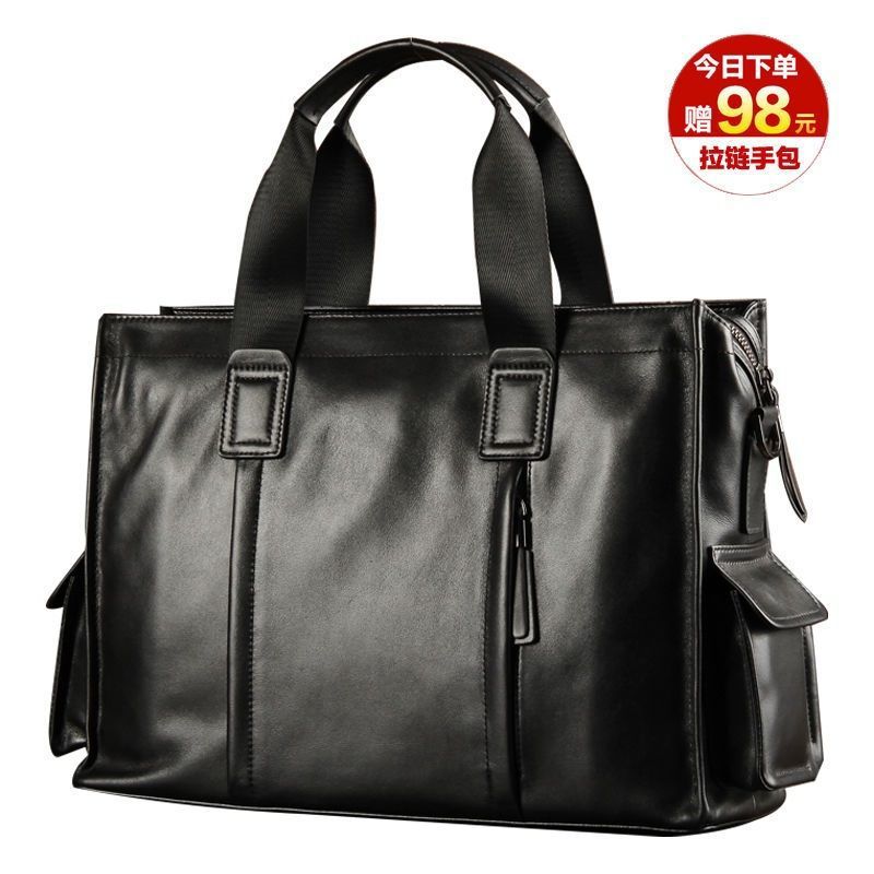 春のバッグ男性用ハンドバッグ縦型ブリーフケースビジネス本革男性バッグトップ層牛革パソコンバッグ卸売り