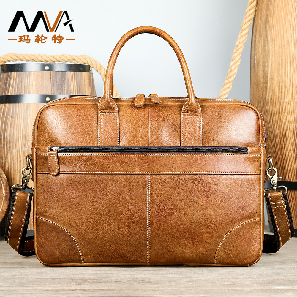 メーカー直販本革メンズビジネスハンドバッグ大容量出張ブリーフケース耐摩耗性ワックスレザー男性ショルダーバッグ