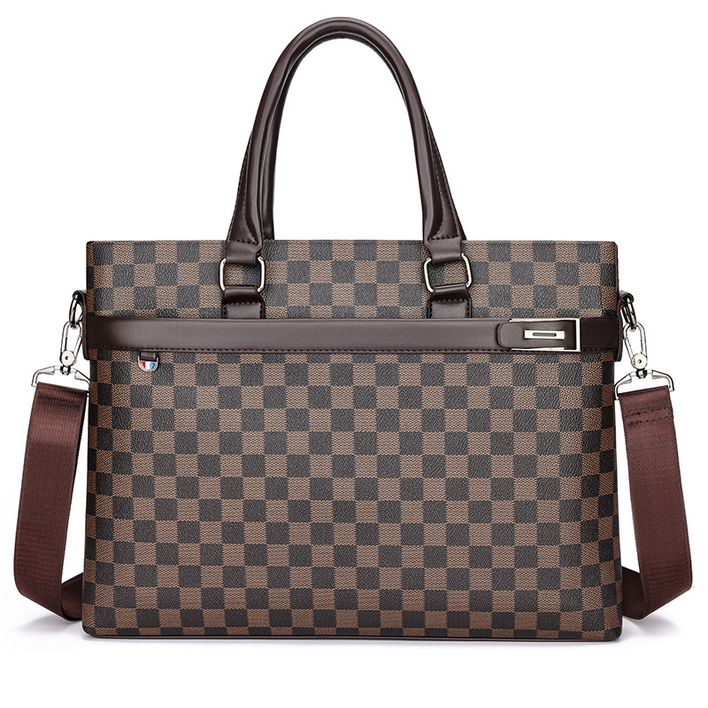 クラシック大容量ビジネス手提げシングルショルダー斜めがけバッグ新ファッションメンズ格子縞ブリーフケースパソコン書類カバン男