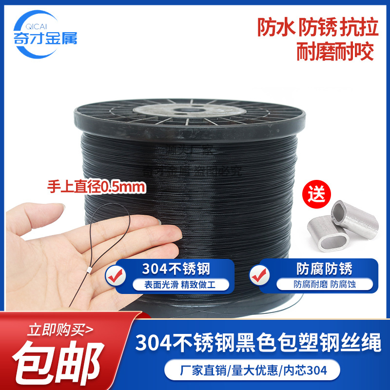 304プラスチックワイヤーロープ黒色ナイロン海釣り糸アクセサリー線回転バックルロープ靴帯メーカー直販