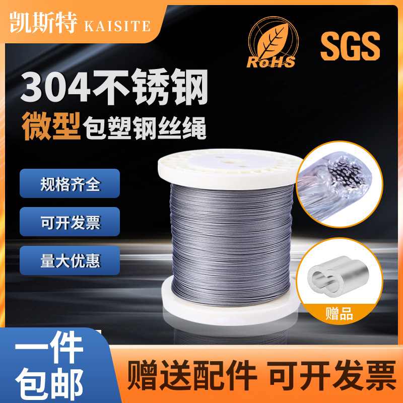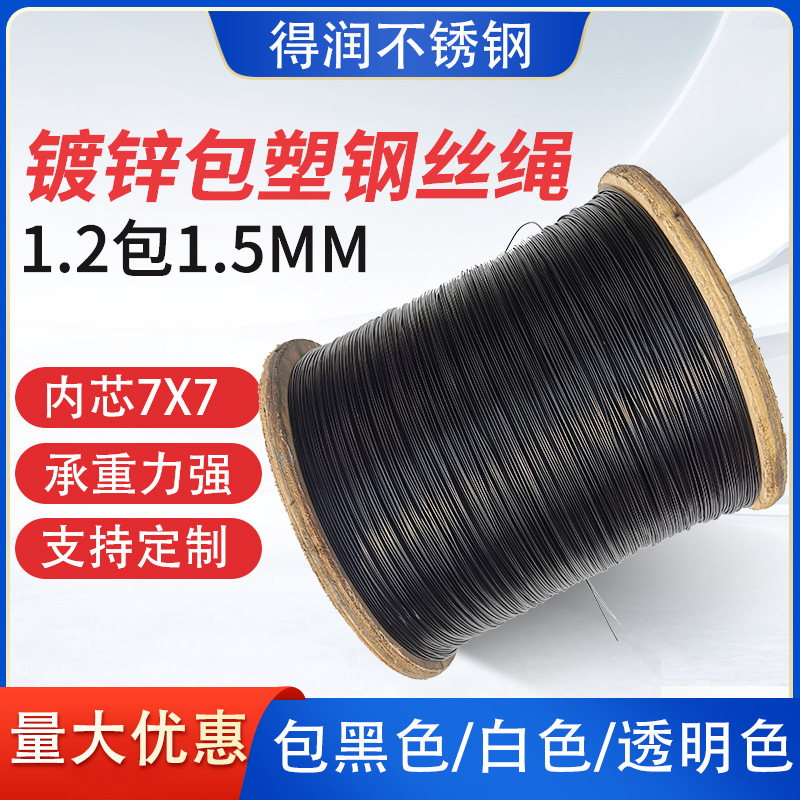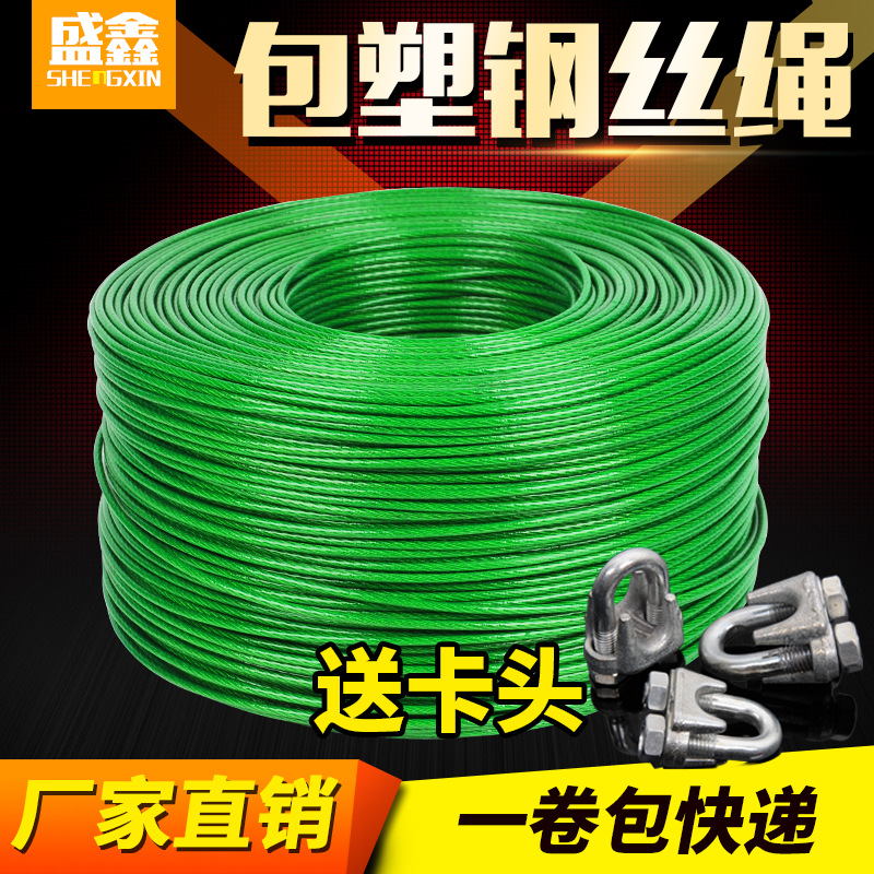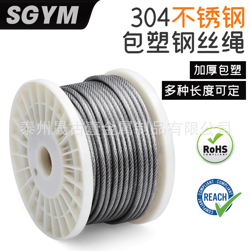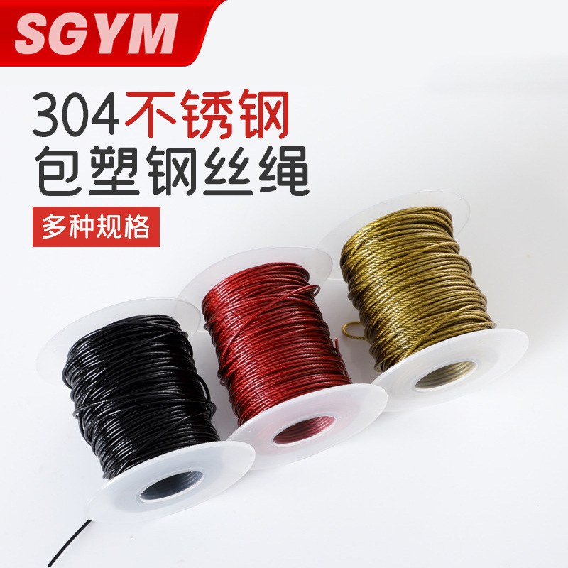304ステンレス包みワイヤーロープ塗装PVC包みゴムロープ物干しロープ厚いステンレスロープ