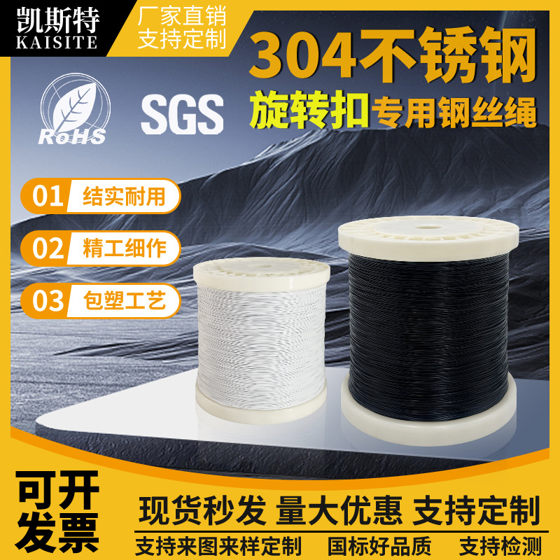 304 パッケージプラスチック鋼線ロープ黒ナイロン海釣り糸ジュエリーラインスイベルバックル鋼線靴ひも工場直販