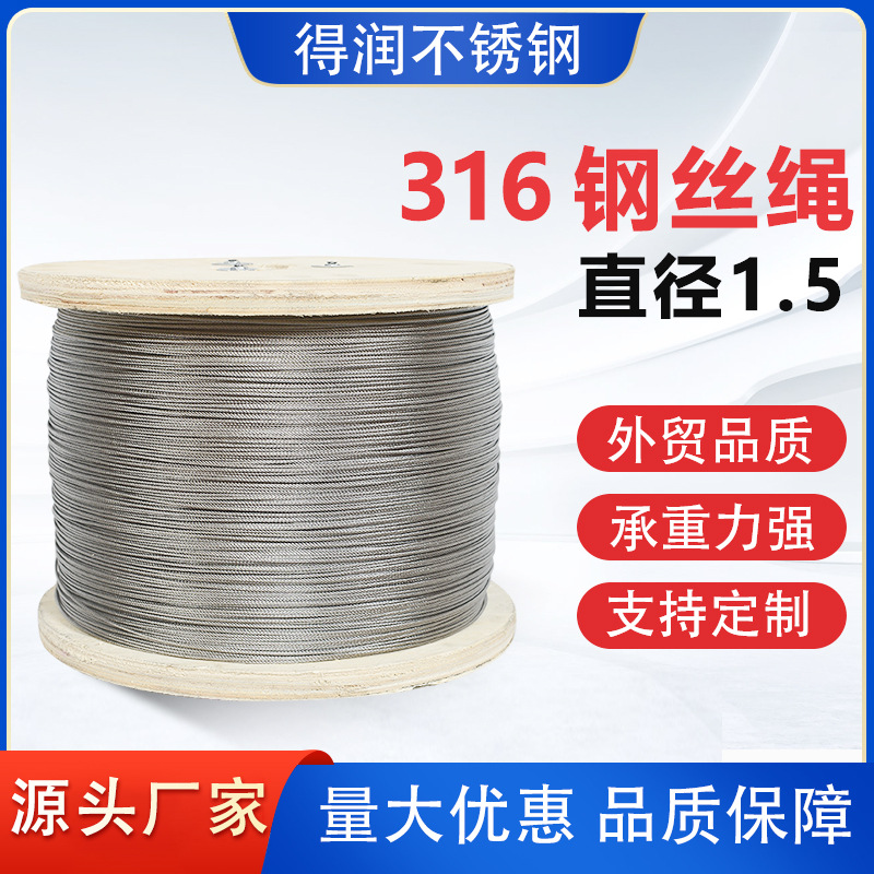 316ステンレス鋼ワイヤーロープ物干しロープ牽引ロープ直径1.5mm