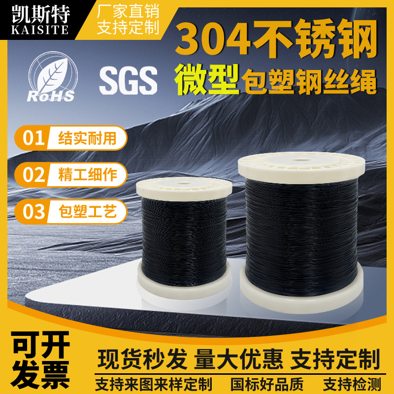 黒色被覆ワイヤーロープ304アウトソーシングナイロンワイヤーメーカーのジュエリー線漁具海釣り前リード線