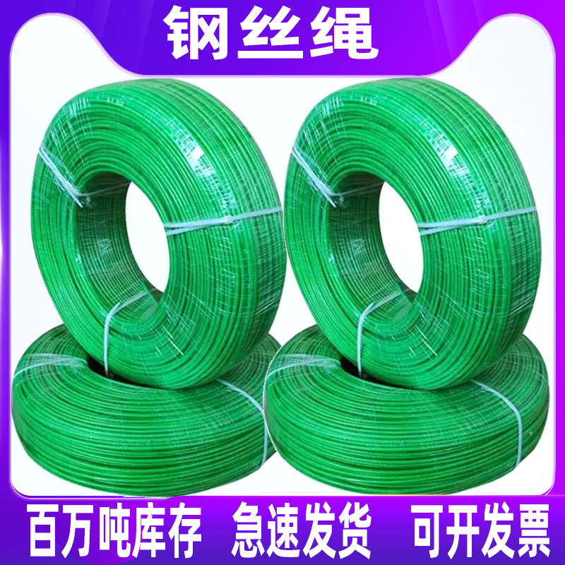 在庫あり卸売 緑色PVC被覆鋼線ロープ 2mm-12mm 鋼線物干しロープ 吊り下げロープ 工事用