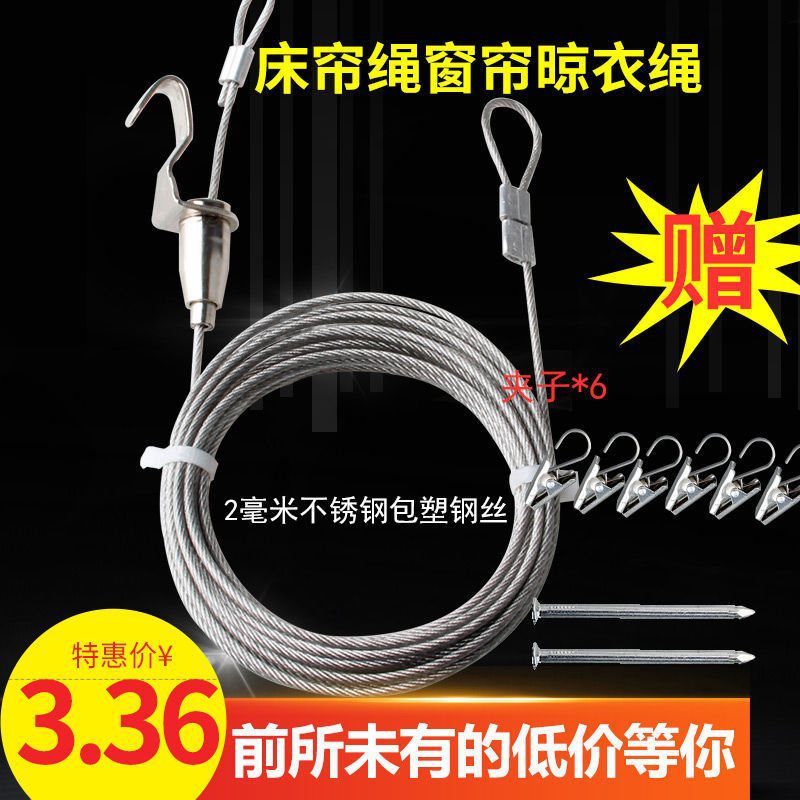 ステンレス鋼ワイヤーロープ伸縮カーテンロープ物干しロープ寮二段ベッドパンチングなし吊り下げカーテン固定ロープ