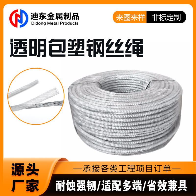 透明プラスチックコーティングされた鋼線ロープ卸売白透明サンシェードネット革で覆われた柔らかい細い亜鉛メッキ鋼線ロープ