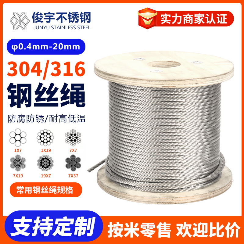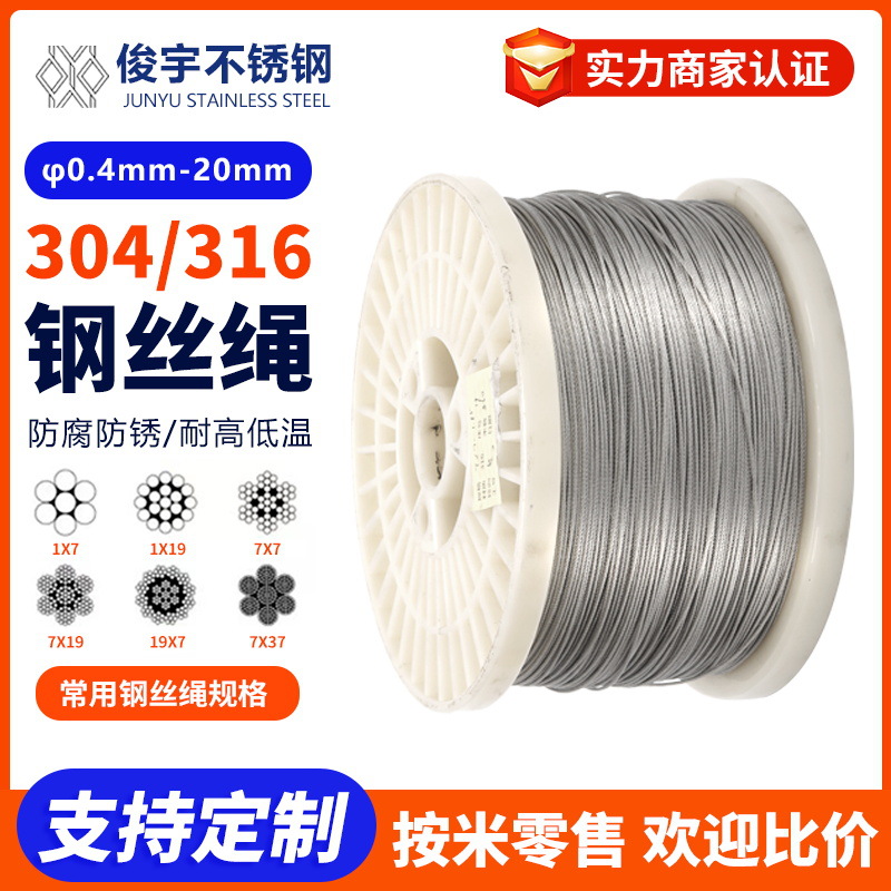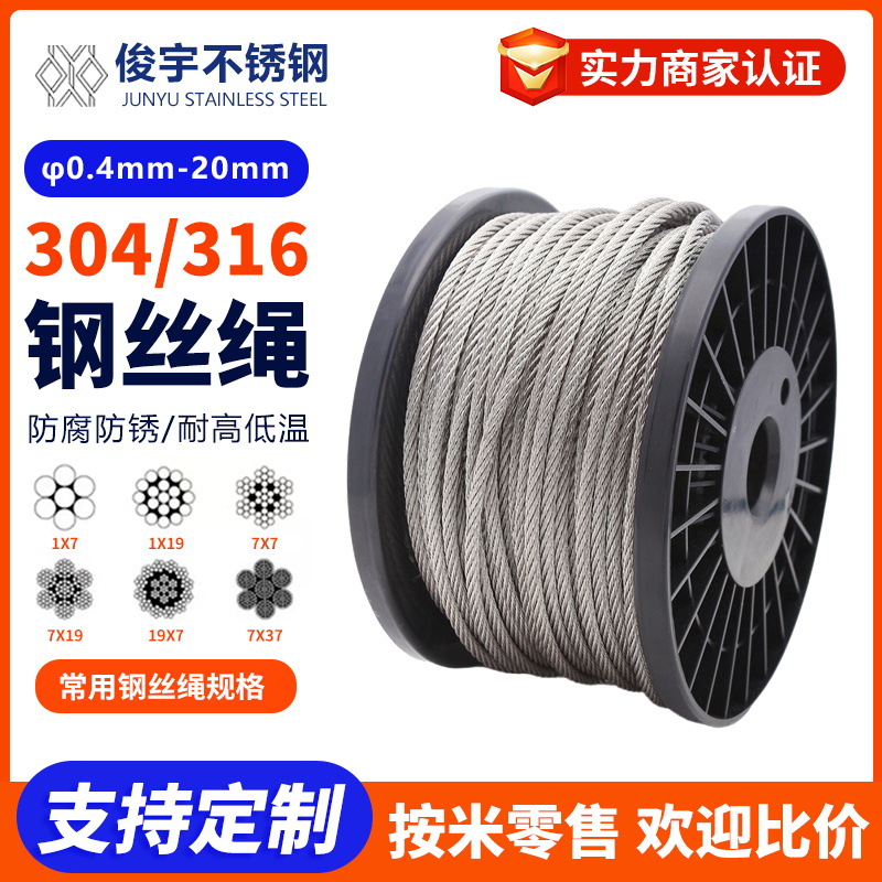 304 ステンレス鋼ワイヤーロープ、細くて柔らかい、工業用温室牽引、吊り上げ、乾燥、316 ステンレス鋼ワイヤーロープ、船舶用