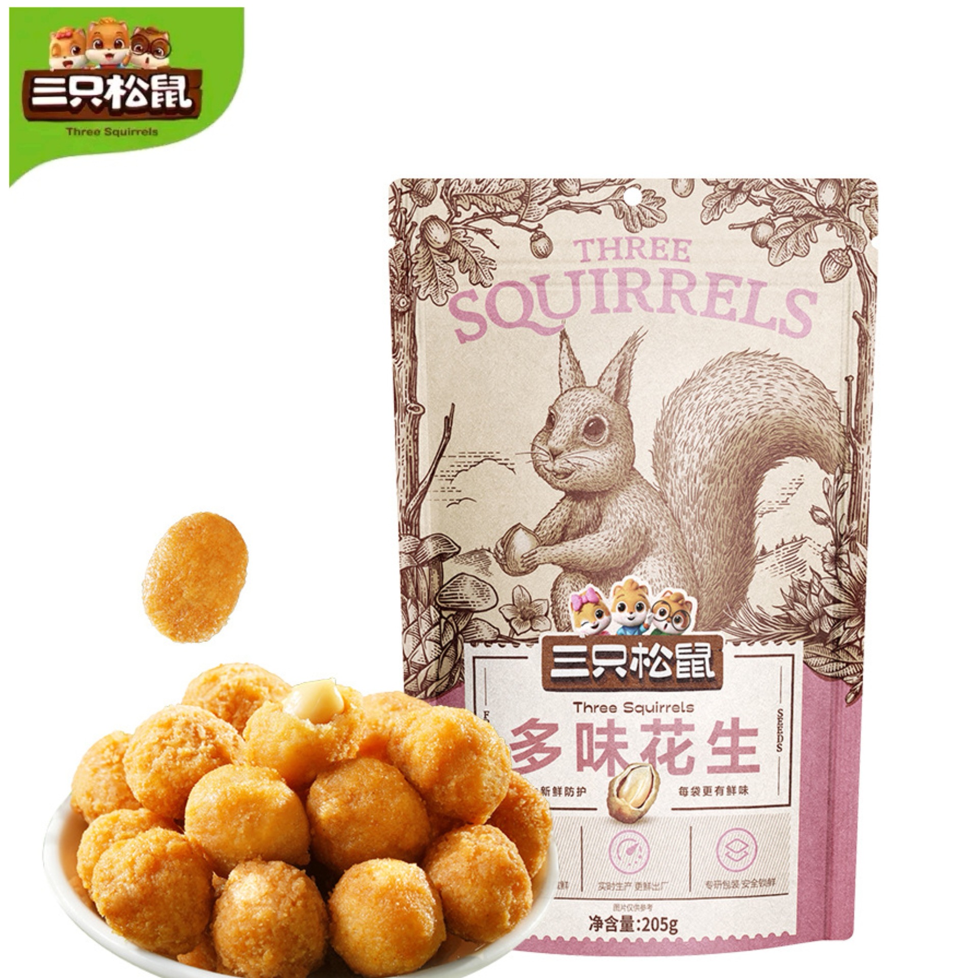 三只松鼠 マルチフレーバーピーナッツ 205g ナッツ・ローストシード卸売特産品 紫芋ピーナッツ カジュアルフード スナック菓子