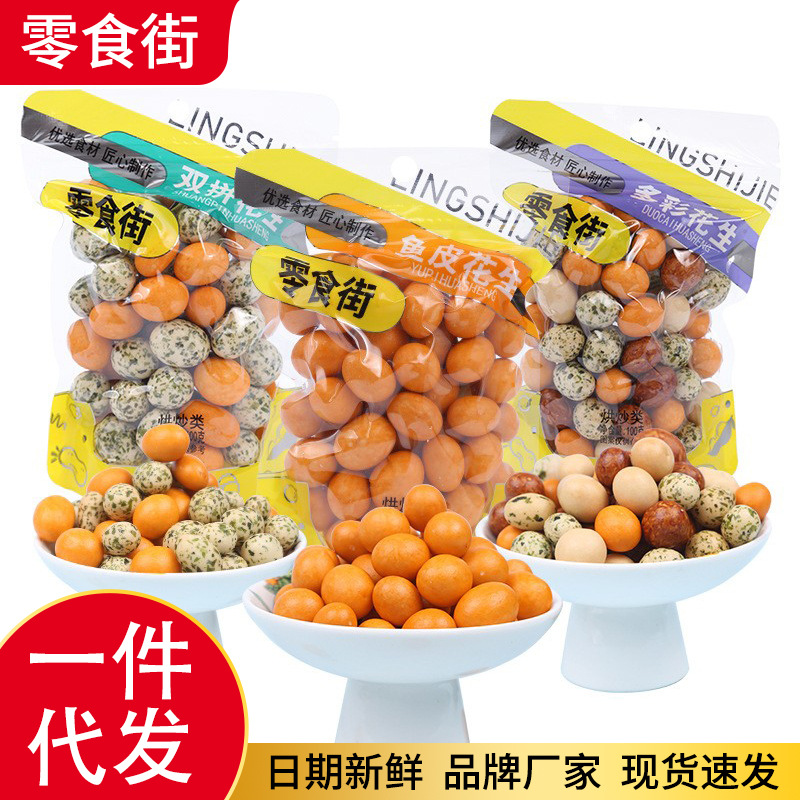 カラフル豆卸売、食欲を満たすネット人気魚皮ピーナッツ、カリカリ豆、日本豆、七色ピーナッツ、ナッツ、カジュアルスナック