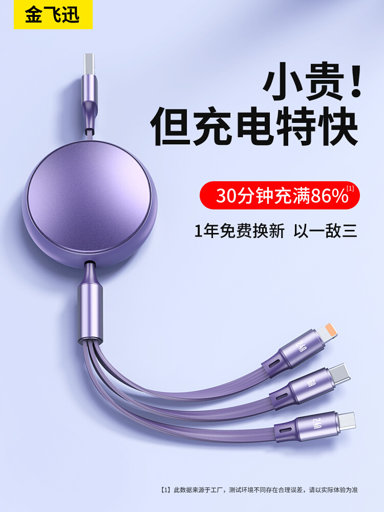 金飛迅データ線三合一充電線一引き三速充電三頭はリンゴの米安卓tpyeに適している