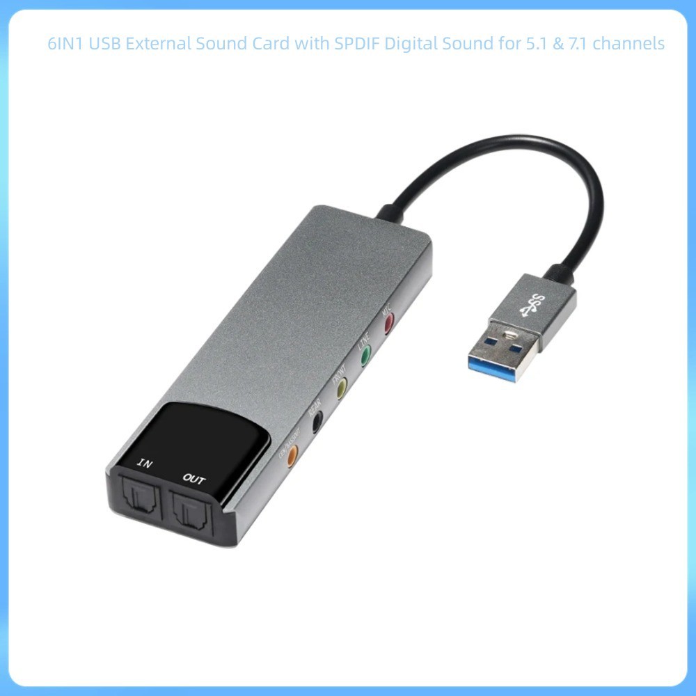 新しい USB 外部光ファイバーサウンドカードミキシングサウンドカード 6-in-1 USB サウンドカード