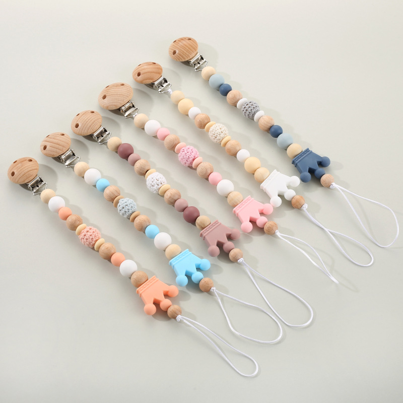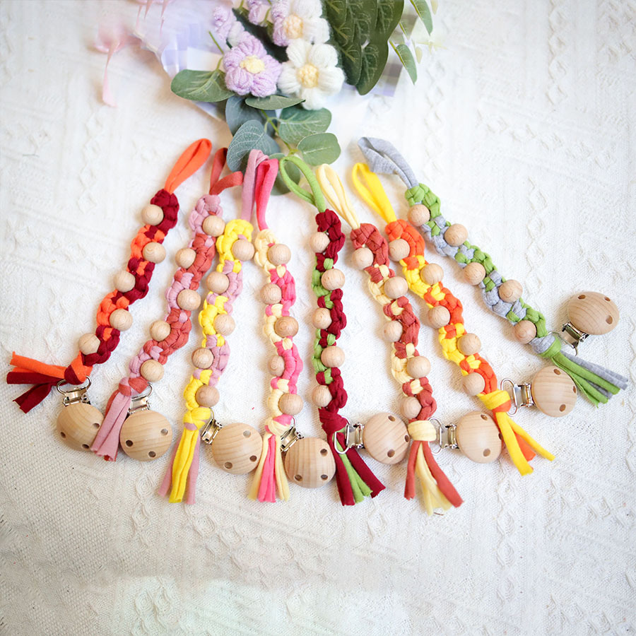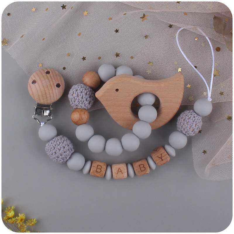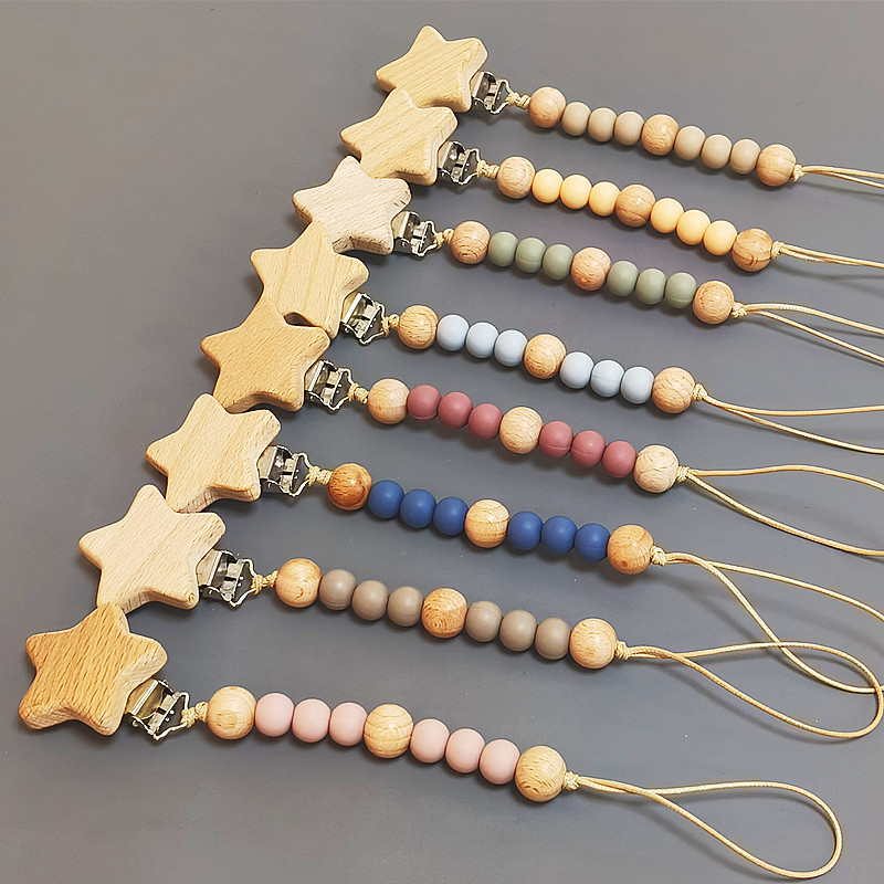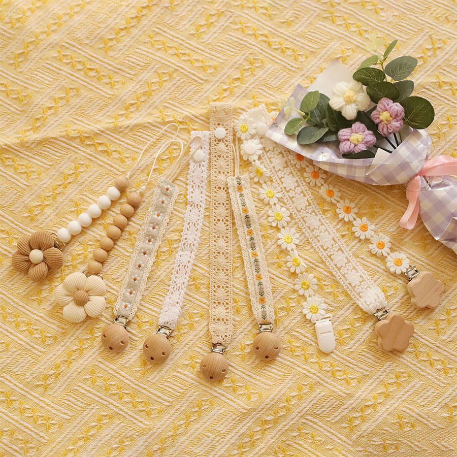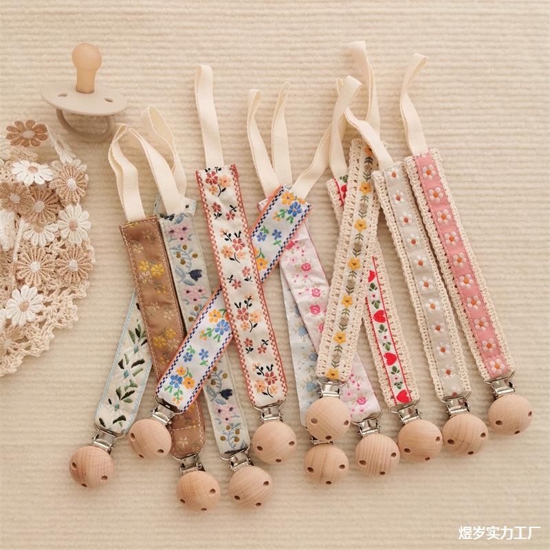 ins 刺繍入りベビー刺繍おしゃぶりチェーンベビーおしゃぶり小さなおもちゃ落下防止チェーンブナ材おしゃぶりクリップストラップ