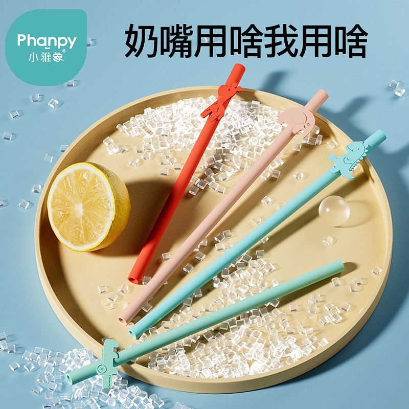 小雅象シリカゲルストロー子供食品級非使い捨て赤ちゃんストロー赤ちゃん柔らかいストローが水を飲むアニメ