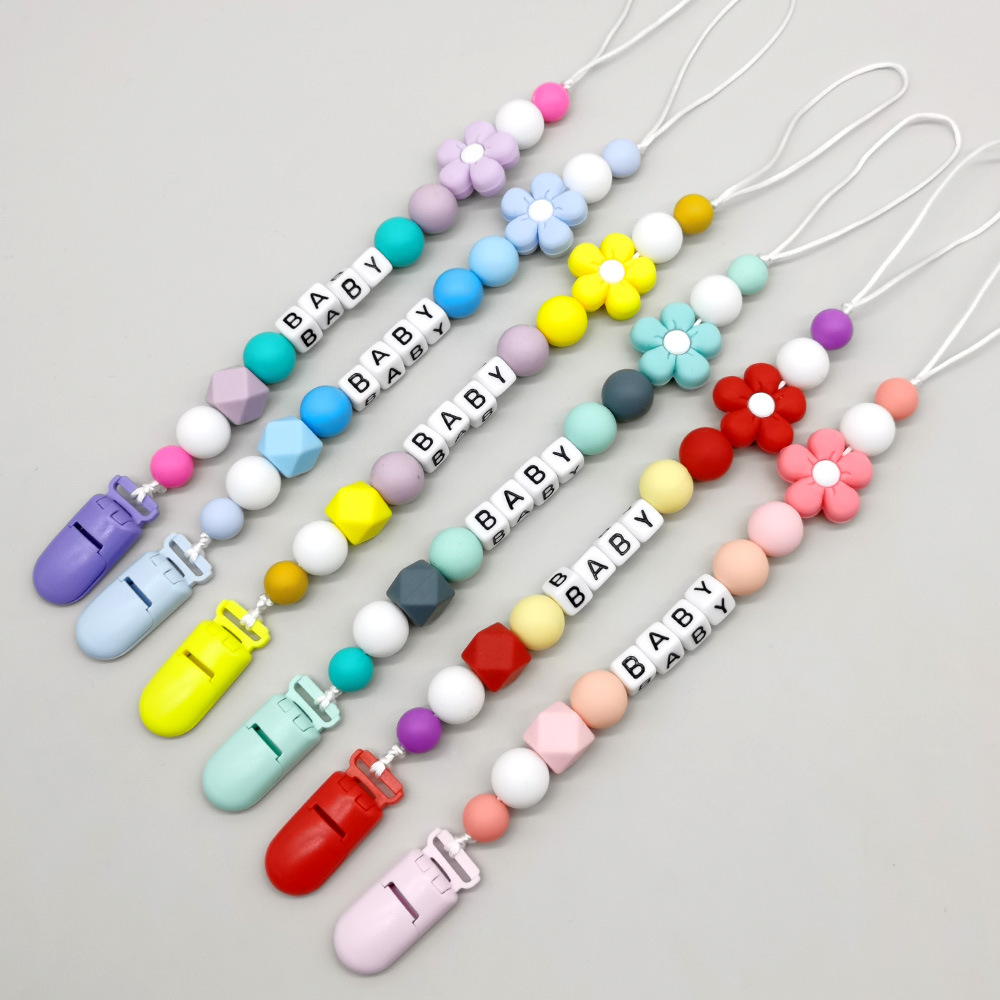 乳幼児用品の新型赤ちゃんがおしゃぶりチェーンの創意花をなだめます。