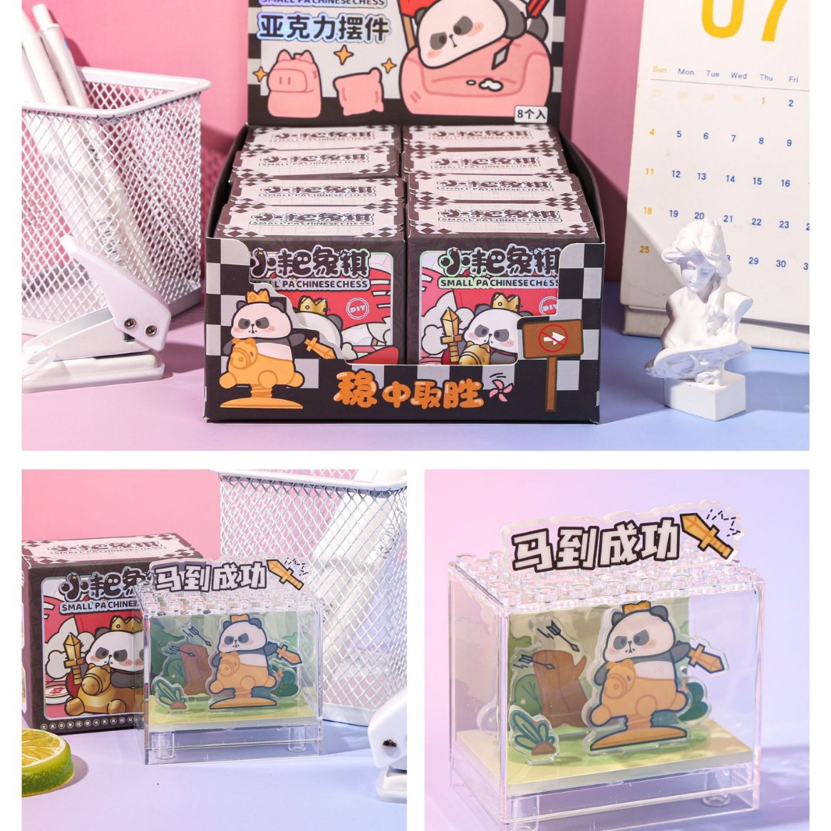 東莞の商品の供給源のアクリルは油の桃の心の筆筒に入って筆を挿して浮かんで公仔を飾って学生の贈り物を置きます。