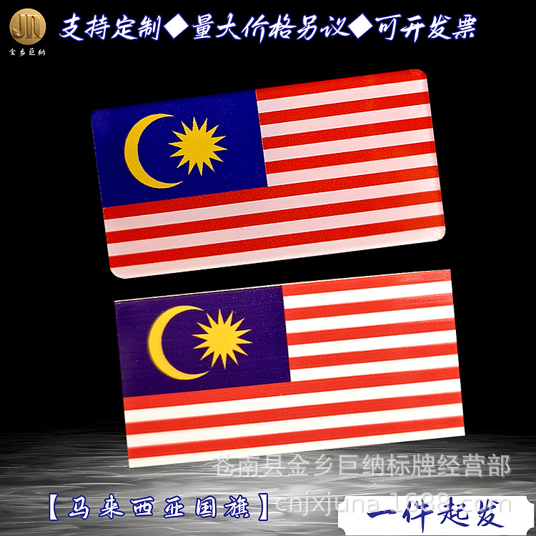 マレーシア国旗バッジ、愛国バッジ、二層アクリルブローチ、UVプリント大型ピン、各国でカスタマイズ可能