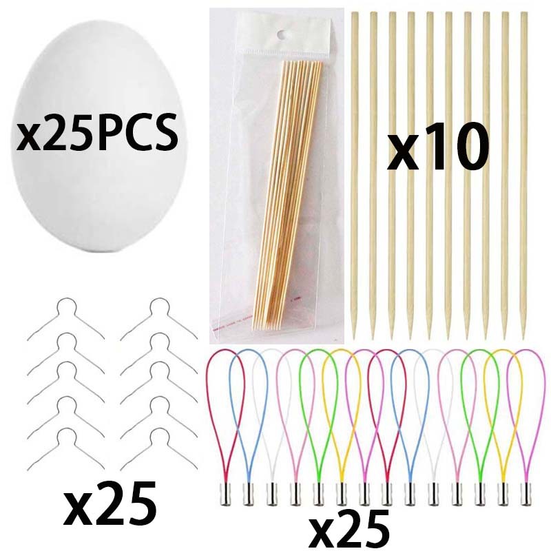 白い卵25個セットと竹串携帯チェーン金属フック子金線イースターシミュレーション卵モデル
