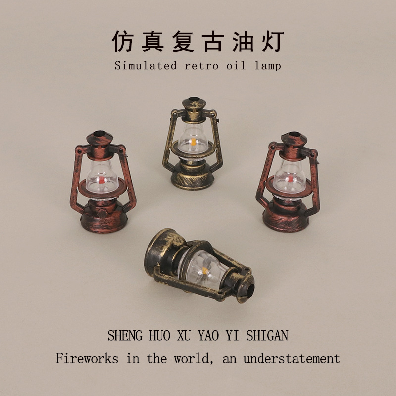 クリエイティブ人形屋レトロミニ銅色灯油ランプモデルミニチュアシーンクリスマス造景装飾撮影道具