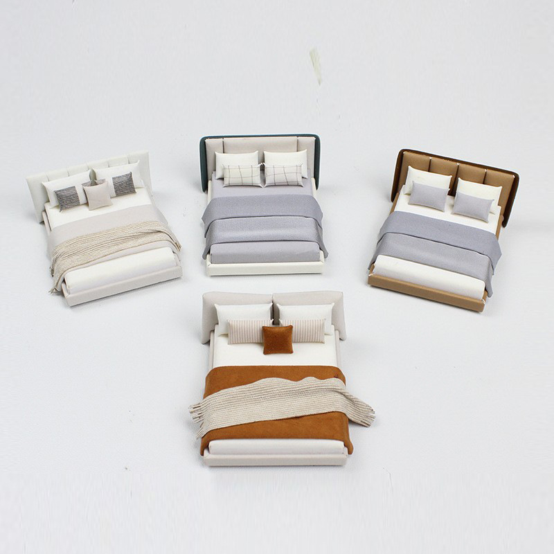 Diy建築砂盤シーン模型材料室内小家具置物ミニベッドネット赤クリーム風ツインベッド