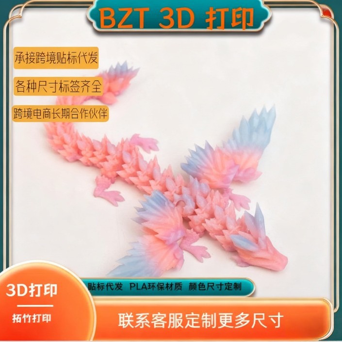 クロスボーダー起爆金3dプリント双虹夜光水晶翼龍玩具置物出店関節活動可能玩具