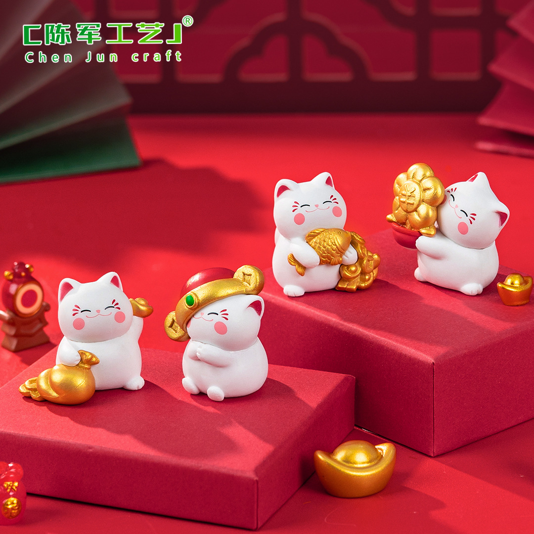 微景観創意可愛い招き猫公仔diy装飾品部品ミニ金持ちデスクトップ車の置物