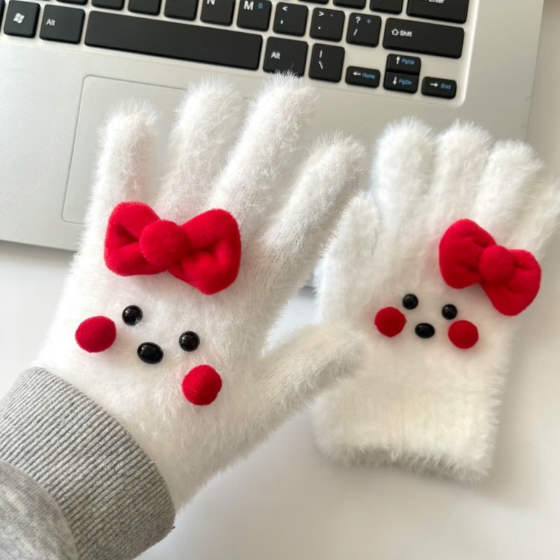 かわいい泡の蝶結びの子犬の手袋は暖かい冬の凍結防止の絨毛の防寒の学生を保証します。
