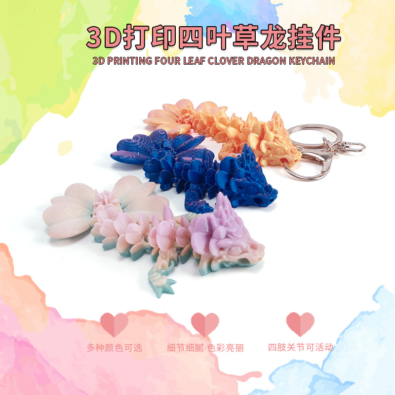 3Dプリントかわいい四葉草龍中国龍薔薇龍キーホルダーストラップ玩具模型置物