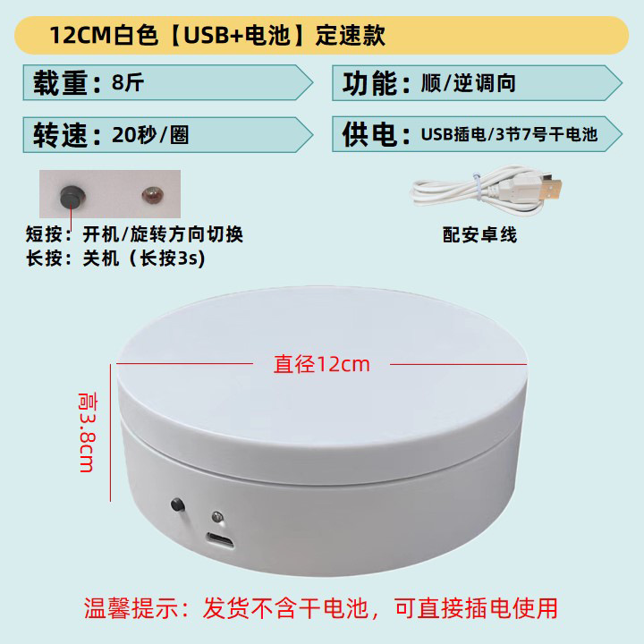 12cm電動回転盤回転展示台usbプラグイン映像撮影展示棚生中継アナウンサー回転棚