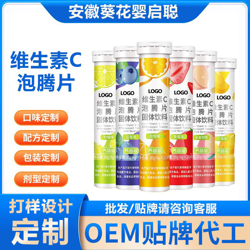 ビタミンC発泡錠、様々なフルーツフレーバーの固形飲料、OEM、OEM加工、箱売りの卸売