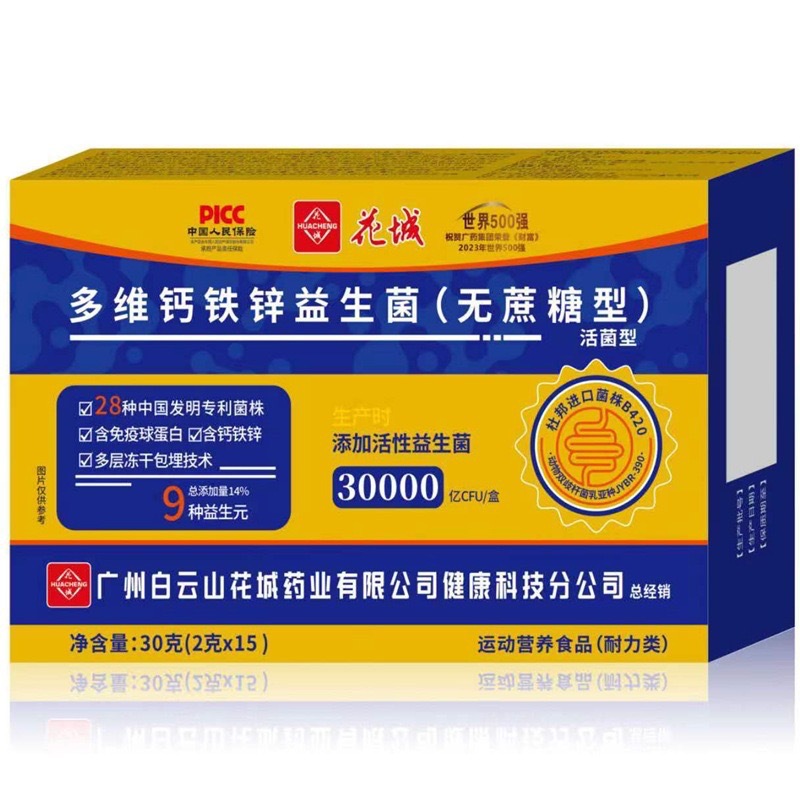 広州白雲山花城多次元カルシウム鉄亜鉛益生菌無ショ糖型30000億活性益生菌15袋