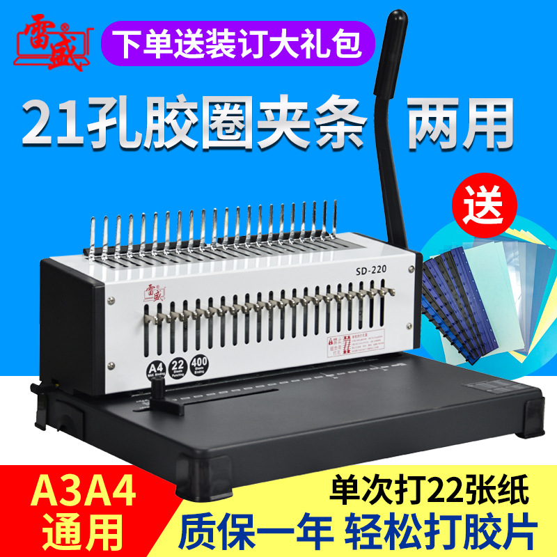雷盛ゴムリング製本機クリップ穴開け機櫛式21穴ファイル穴開け器10穴クリップ機SD-220