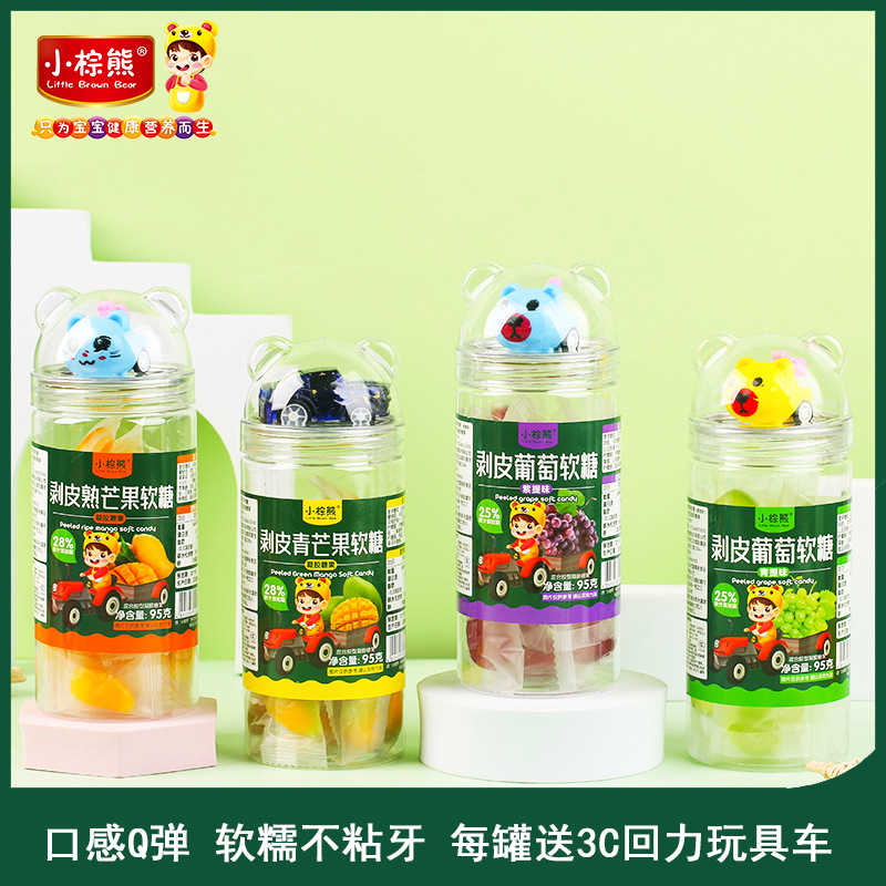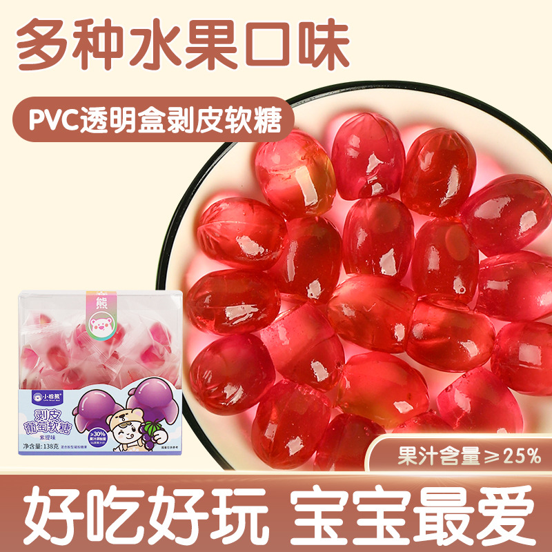 ヒグマは皮をむいてブドウのグミを独立して4種類の味を包装します。