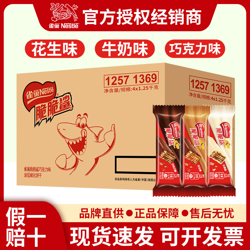 ネスレのサクサクしたサメ5kgは、チョコレートミルクのピーナッツ味を400本入れています。