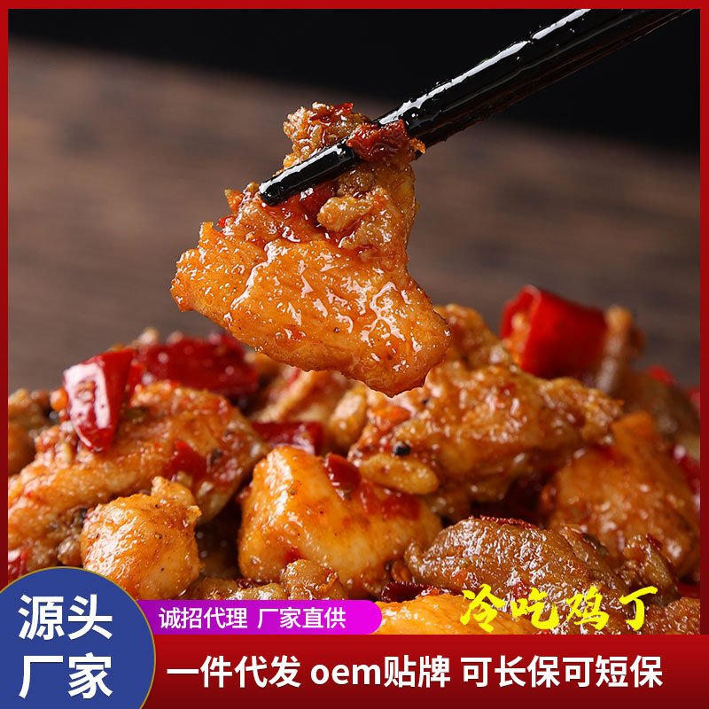 四川の特産品の麻辣冷食鶏丁直供冷食兎源工場は今、熟食鶏肉の間食を炒めている