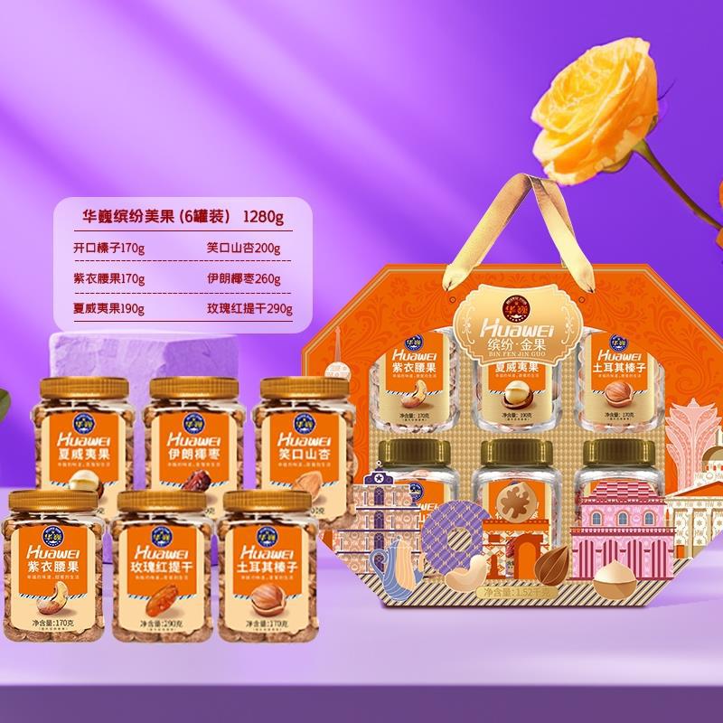 華巍ナッツのカラフルな金果礼箱1280g混合間食大ギフトバッグ旧正月の年産贈答社員福祉