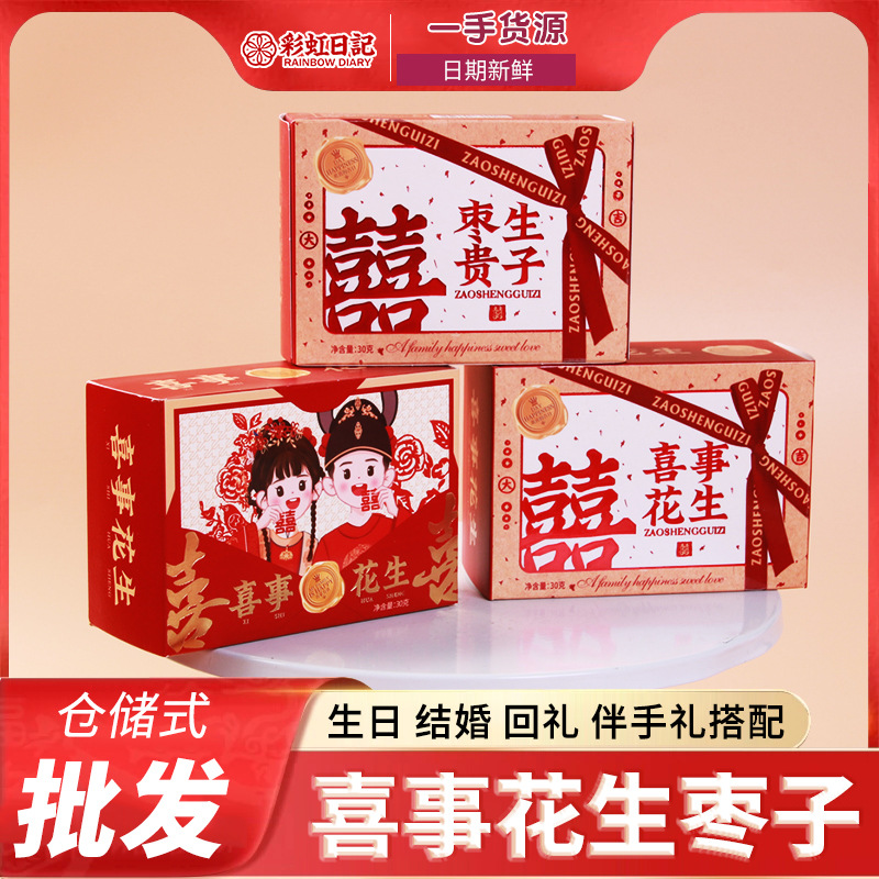 虹の日記ナツメの生貴子のおめでたい版の祝い事の落花生の赤いナツメの結婚のお土産と喜ナツメの喜糖の卸売り