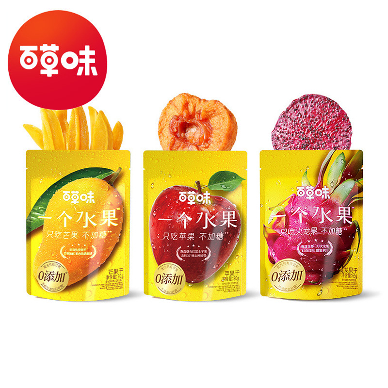 百草味の果物はリンゴ80g/マンゴー80g/火龍果65gの砂糖漬け卸売りしか食べない