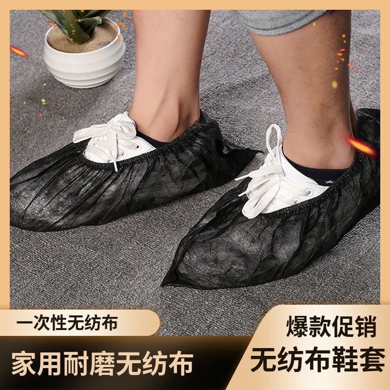 使い捨て黒色厚手不織布靴カバー家庭用防塵耐摩耗足カバー滑り止め機械室学生接客靴カバー