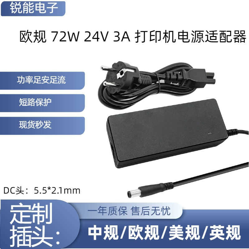 ヨーロッパ規格24V 3A 72W黒色ストレートヘッド5521 # プリンタ充電器アダプタ省エネ