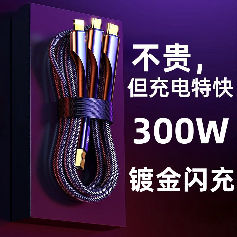 300Wフラッシュ充電三合一データ線6a超速充線適用安卓華為リンゴ一引き三充電線