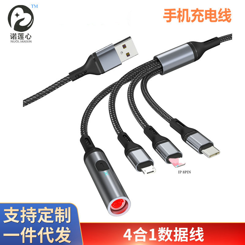 4合1速充線点車載煙器TYPE-C携帯電話充電線4合1多機能一牽引四データ線