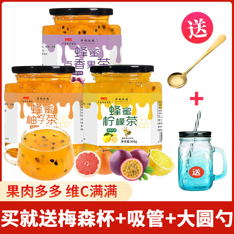 はちみつ柚子茶500gはちみつレモンはちみつ百香果の3種類の味にはちみつ柚子茶を自由に組み合わせる