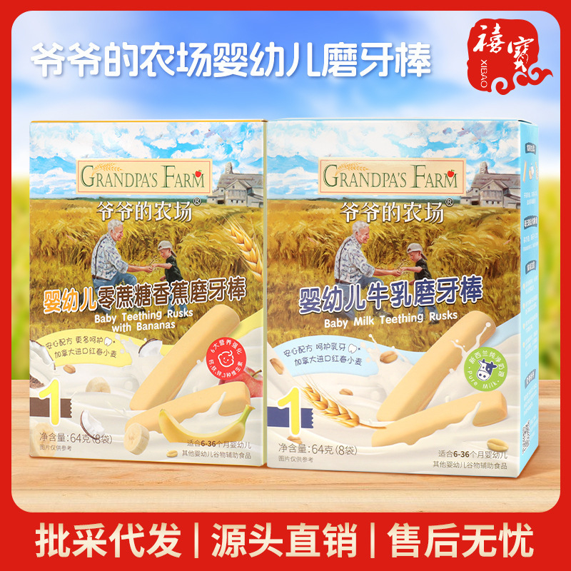 Grandpa's Farm 幼児用ミルク歯固めスティック 64g バナナ風味 子供用スナック食品 シリアルフィンガービスケット