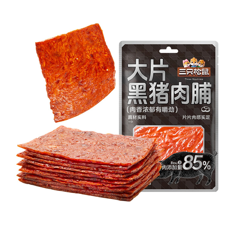 Three Squirrels_大粒黒豚ジャーキー 30g オリジナル/ブラックペッパー味 ポークジャーキー 調理済み食品専門 おやつ