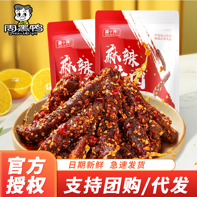 周黒鴨周小伴牛肉条90g包装特産麻辣塩味商超卸売り蜀香牛肉夜食肉