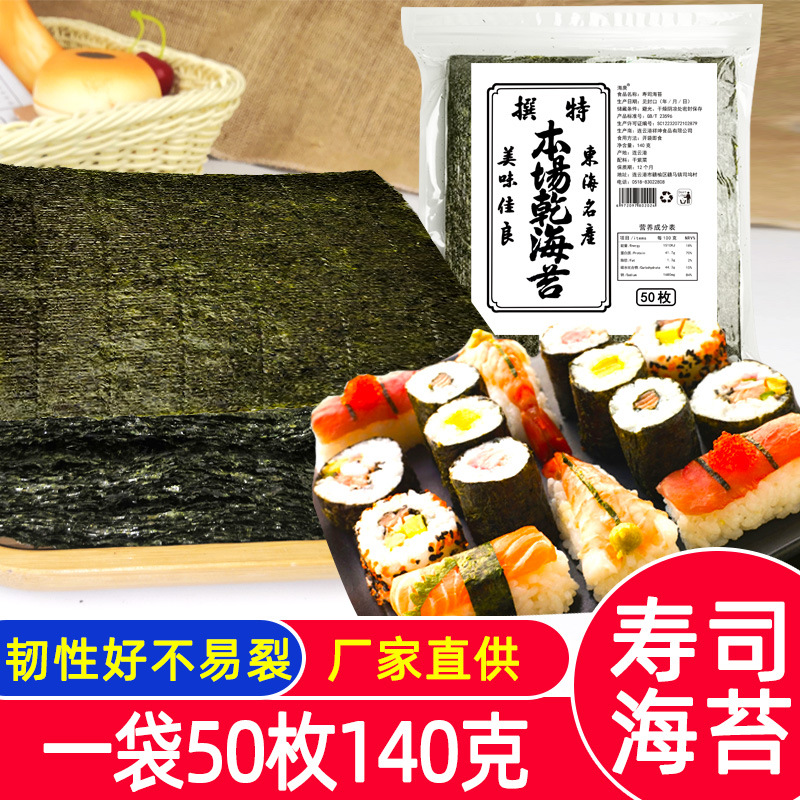 海庚寿司海苔専用の大きな塊50枚の海苔寿司巻き家庭用寿司包みの材料は郵送で卸売りします。