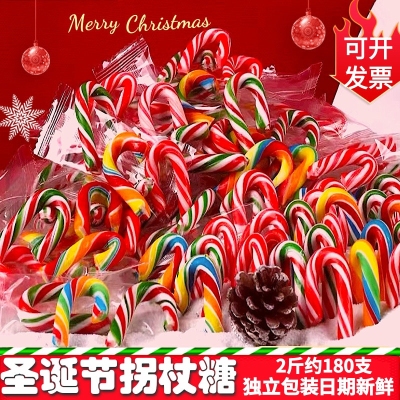 クリスマスキャンディー、キャンディーの杖、虹色のミニキャンディーの杖、袋詰め、クリスマスイブ、子供たちがプレゼントを共有するためのクリスマスキャンディー