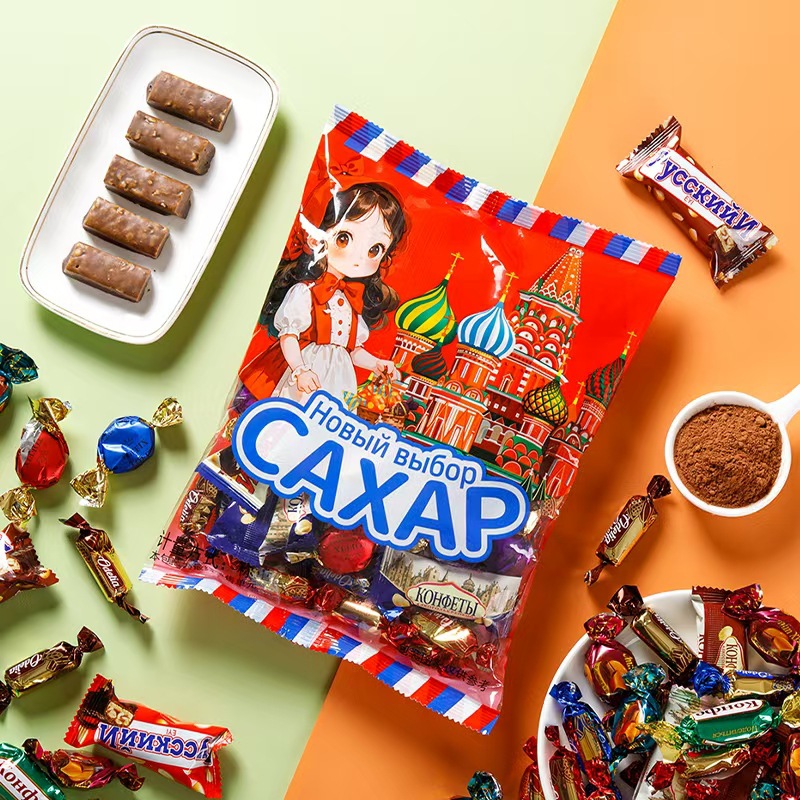 ロシア風チョコレートミックスサンドイッチキャンディー新年スナックウェディングキャンディー食品トフィーバークミルクキャンディー
