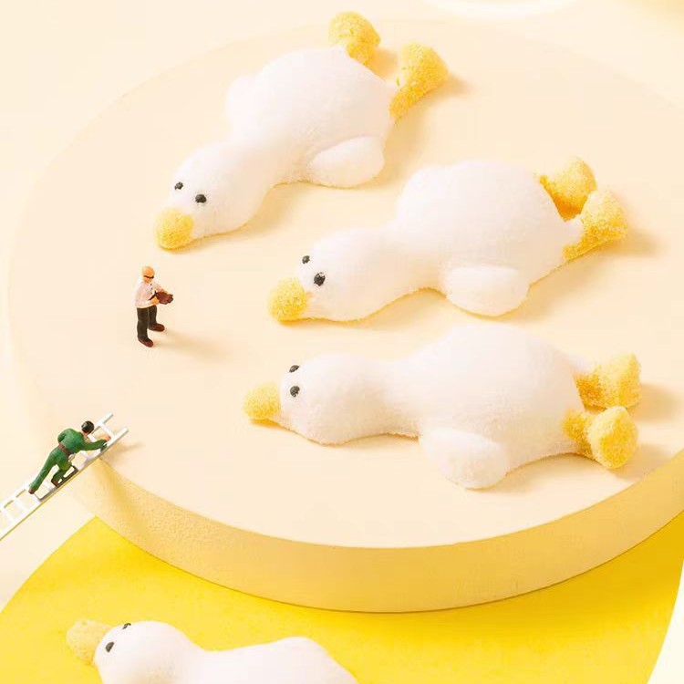 横になっているアヒルのマシュマロ3d立体動物の形のグミのデザートのケーキの装飾の漫画のかわいい置物はアヒルに腹ばいになります。